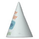 This sweet birthday party hat design features the lovable Slumberkins Hammerhead character with a cheerful smile and soft pastel blue tones that feel calm, friendly, and perfectly kid-focused. The playful “Happy Birthday” text arches above the character, while a customizable name below adds a fun personal touch that makes the celebration feel extra special. The clean layout and gentle color palette create a modern, soothing look that works beautifully for toddlers and young children, especially for ocean- or shark-themed birthday parties. This design is ideal for creating a coordinated, character-inspired celebration that feels joyful without being overwhelming.