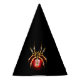 Mechanical, steampunk spider with gold, brass gears and a red glass lamp on a black background. Steampunk style.