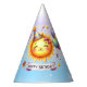 ¡Prepárate para celebrar con un sol sonriente usando un gorra de papel de cumpleaños! Completa tus decoraciones de cumpleaños con globos, estrellas y mucha alegría y diversión. ¡Perfecto para un fiesta infantil!