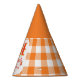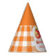 Top off the celebration with these delightfully sweet peach party hats. The design features a charming kawaii peach character set against a classic orange-and-white gingham plaid background. These are the perfect accessory for a little girl’s summer orchard-themed first birthday party.
