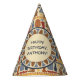 Agrega tu propio mensaje para crear suministros fiestas personalizados con un tema egipcio. Estos gorras fiestas presentan un collage de diferentes ilustraciones inspirados en las obras del antiguo Egipto con tu propio mensaje personalizado en la parte delantera del gorra. Los gráficos amarillos, naranjas, rojos, marrones y azules están colocados sobre un fondo de arena clara.
