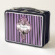 Un fondo atrevido de rayas rosadas y negras con un romántico diseño femenino de gótico steampunk que puedes personalizar con tu nombre y inicial o dar como regalo.
