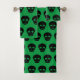Este popular patrón de gótico presenta cráneos negros como puntos de polka, en un bosque esmeralda, verde oscuro.