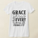 Este diseño de ropa empoderante y teológicamente central presenta la declaración "GRACE Wins EVERY time" (La gracia gana SIEMPRE), haciendo referencia a Efesios 2:8 ("Porque por gracia sois salvos por medio de la fe, y esto no es de vosotros, es don de Dios"). El mensaje celebra la victoria final y el poder salvador de la gracia divina sobre el esfuerzo humano o el pecado. El texto se representa en tipografía negra de alto contraste sobre un fondo blanco limpio de camiseta. El diseño utiliza una mezcla dinámica de fuentes: impresión en bloque grande y negrita para las palabras clave "GRACE" y "EVERY", y letra cursiva fluida para el resto de la cita. Está altamente decorado con un gráfico de corazón y cruces florales detalladas, que simbolizan la fe y la cruz. Esta camiseta versátil es una declaración pública fuerte de fe, salvación y el consuelo del favor inmerecido de Dios. Es ideal para uso casual, servicios de adoración o como un
