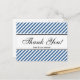 Gracias postales para invitados bodas | patrón de rayas azules. El color de fondo se puede cambiar a cualquier color temático. Cambia la cantidad para obtener el precio más barato por tarjeta. Texto de agradecimiento personalizado con letras elegantes y nombre de novia y novio.