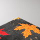 Las palabras, Dar gracias, están escritas en letra de escritura dorada con una hoja dibujada en oro debajo. Hay hojas coloridas cayendo que enmarcan las palabras. El fondo es una acuarela negra con cuadros de cobre. Perfecto para tu decoración de Acción de Gracias.