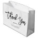 Esta moderna y elegante bolsa de compras en blanco y negro incluye las palabras "gracias" en la tipografía de escritura a mano de moda. Añada el nombre de su empresa o de su empresa, su sitio web u otra información para un bolso que sus clientes corporativos querrán mostrar.