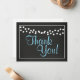 Gracias tarjeta que presenta un fondo de pizarra negro limpio con un color y fuente editable, contorno cuadrado acentuado por luces colgantes. Una tarjeta de agradecimiento única que coincide perfectamente con mis invitaciones. Uno que seguramente impresionará. Haga clic en mi logotipo para ver más tarjetas, etiquetas, pegatinas e invitaciones que coincidan con este tema de pizarra y luces.