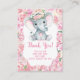 Floral Wreath muy lindo acuarela Elefante Rosa y Gris Gracias tarjeta por cumpleaños, Baby Shower. ¡Añade tu texto!
