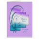 Un elegante agradecimiento de todos nosotros. Una manera encantadora de agradecerle a un grupo de amigos o colegas. Tres rectángulos texturados sobre un fondo de rayas lilas. Un diseño orgánico giratorio los une a todos.