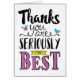 Dé las gracias con este diseño tipográfico de estilo exclusivo con letras a mano con el mensaje "Gracias eres SERIAMENTE el mejor". El diseño incluye acento de pájaro y flor sobre fondo blanco. El mensaje interno se puede personalizar para que se ajuste a sus necesidades personales, pero tiene este mensaje: siempre le das lo mejor de todo lo que eres: amable, reflexivo, generoso. GRACIAS.