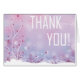 Una tarjeta de agradecimiento basada en nieve rosa con un interior en blanco para escribir una nota.