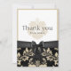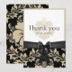 Tarjeta de anuncio personalizada de lazo negro de boda de agradecimiento, patrón floral beige. Consulte el resto de esta elegante colección de decoración para boda y hogar.