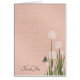 flores blancas de puff con mariposa sobre un brillante rubor rosa y fondo dorado de puntos de polka para agradecerte
