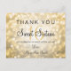 Elegante Sweet 16 Cumpleaños Gracias Nota diseño con Luces Purpurinas Gold Bokeh y texto de nombre personalizado.