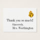 ¡Aquí tienes un poco de placer! Este arte es una combinación de los diseños de Gina Jane para los que tengo DERECHOS EXCLUSIVOS de usar en Zazzle cuando incluso su / la de su empresa CU está legalmente prohibida. ¡Disfrútalo! Como profesor, cuando enseñaba arte en la escuela primaria especialmente, obtenía fácilmente más de 100 regalos de Navidad al año, ¡y pasaba la mayoría de mis Navidades escribiendo 100 gracias! Algunos dijeron que no les dan tarjetas de agradecimiento; sin embargo, los niños los esperan y se los merecen, así que... esta sería una solución dulce. Lo creé en la TARJETA DE NEGOCIOS. Hay 100 en la caja. Hay suficiente espacio para agregar el nombre del estudiante/de cualquiera en la parte trasera. Esto le ahorrará dinero y tiempo. Esto reconocerá lo dulces que son también los regalos. Siempre quiero un agradecimiento. ¡Lo hago! Cuando estoy agradecida, lo recuerdo. Cuando no lo estoy, recuerdo no dar un regalo la próxima vez ... ; ) Esta es una plantilla, así que ciertamente puedes cambiar todo en el lado de atrás y lo que quieres que diga el frente. ¡¡¡GRACIAS!!! Sabes, ni siquiera tiene que ser una tarjeta de agradecimiento. ¡Puede ser lo que quieras que sea! Gracias, Sharon Rhea Ford, NBCT-Art (www.zazzle.com/sharonrhea*) Por favor, díganle a sus amigos y venga a mí directamente y a menudo. ¡Lo agradezco! Oh, lo ofrezco en el stock blanco aquí, pero también se ve genial en Pearl. Uso indestructible para mis tarjetas de visita; sin embargo, no lo hagas para estas ya que quizás quieras personalizarlo con los nombres de los donadores de regalos.