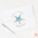 Los Pegatinas de Starfish Beach Wedding personalizados con nombres de novias y novios y fecha de boda presentan acuarelas en tonos azules. Utilícelos para regalos y favores de boda. Visita www.zazzle.com/dotellabelle para verlos a todos. Arte y diseño únicos por Victoria Grigaliunas de Do Tell A Belle.