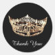 Pegatina redondo mostrado de negro con una foto impresa de una corona de oro de las reinas del concurso. Personalizar este artículo o compra tal cual.