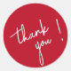 Una llamativa tipografía de escritura en color blanco sobre rojo se baraja cuidadosamente a través de este pegatina, una manera simple y cuidadosa de mostrar su aprecio a sus amigos, familia o clientes.