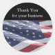 Gracias pegatinas con una bonita bandera de EE.UU. que puede usar y un excelente texto y diseño que puede personalizar. Gracias a sus clientes poniendo estas gracias de negocios en sus recibos o facturas o enviándolo en una postal gracias.