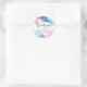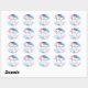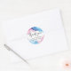 Gracias pegatinas con detalles personalizados para sus favoritos de fiesta, con fondo de color azul y rosa. También están disponibles diseños de correspondencia.