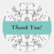 Precioso damasco blanco y negro con pegatinas verde azulados. Hermosa manera de decir "¡Gracias!" Excelente para muchas ocasiones, incluyendo bodas, duchas, cumpleaños, etc. Obra original de Audrey Ascenzo.