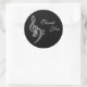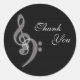 Un conjunto de música simple y elegante en blanco y negro con tema Gracias pegatinas redondos - tréboles blancos y bajos contra un fondo negro texturizado. Gracias por la música.