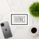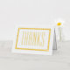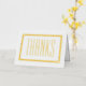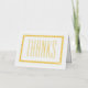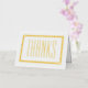 Sencilla y elegante, esta moderna tarjeta de agradecimiento tiene relucientes letras de Relieve metalizado dorado que deletrean "GRACIAS" con un borde dorado a juego enmarcando la tarjeta. Esta tarjeta es una gran elección para estar a mano para enviar notas de agradecimiento por cualquier ocasión.
