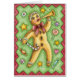 Diseño navideño de ilustración vintage con un hombre de jengibre soplando un cuerno, sosteniendo un bastón de caramelo y rodeado de dulces.