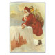 Imagen de Navidad con ilustración vintage con Papá Noel bajando por la chimenea con un saco lleno de juguetes en Nochebuena.