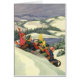 Ilustración vintage de Navidad con niños deslizándose en trineo por una colina cubierta de nieve el día de Navidad.