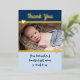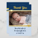 Gracias por regalos recién nacido Relieve metalizado azul oro tarjeta plana. Diga gracias por los hermosos regalos que recibió en el nacimiento de su bebé. Reemplace la foto con la suya propia y agregue su mensaje. Diseñado en azul claro y oscuro, con corazones de amor y un verdadero Relieve metalizado de oro en el frente.