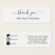 Use esta tarjeta de agradecimiento insertada como una forma excelente de agradecer a sus clientes, y también una gran manera de difundir la palabra sobre su pequeña empresa o tienda online a través de los usuarios de los medios sociales en la parte posterior. La tarjeta del recinto incluye un guión elegante que dice "Gracias" con iconos en los medios sociales y detalles de contacto en la parte trasera sobre un fondo blanco limpio que hacen que destaque el guión elegante y todos los iconos de los medios sociales y detalles sobre su pequeña empresa. Si quieres que cambien los iconos de los medios sociales, por favor avísenme.