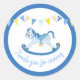 Muchacho Baby Shower gracias pegatinas en colores azul y amarillo. Perfecto para los fiestas de la ducha bebé, gracias a sus invitados. Hay otros elementos coincidentes disponibles. Cuadrícula de acuarela de caballo de roca por y diseño de Sarah Trett para www.mylittleeden.com