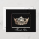 Esta tarjeta postal es perfecta para dejar que toda tu familia y amigos sepan cómo quieres darte las gracias por apoyarte. Postal mostrada con una foto impresa de una corona de concurso en tono dorado. Personalizar este elemento, agrega tu propio texto o compra tal cual.