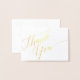 Una tarjeta clásica de agradecimiento de Relieve metalizado dorado con glifos estilizados para elevar el tipo de letra.