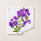toalla de baño de bonito con la imagen de un cuadro acrílico de pansias violetas. También hay palabras de elogio que le dan a Dios toda la gloria de decir "Gracias" por todo lo que hace.