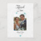 Comparte tu gratitud con estilo con esta tarjeta de agradecimiento de boda totalmente personalizable. Añade dos de tus fotos favoritas de bodas, personaliza los nombres de la novia y el novio, y edita el mensaje más sincero en la parte de atrás para convertirlo realmente en tu propio. Perfecto para agradecer a los huéspedes y preservar un momento especial, esta carta es un bello conservador que apreciarán. Añadir 2 fotos personalizados Personalizar los nombres de la novia y del novio Editar el mensaje de agradecimiento en la parte posterior Varios tipos de papel y los acabados están disponibles Haga clic en "Personalizar" para empezar a crear su perfecto agradecimiento!