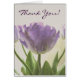 Gracias tarjeta con flores de tulipán morado. Excelente por agradecer a las damas de honor, invitados, amigos y familia por venir a su fiesta de bodas. Tipografía elegante con una imagen floral elegante.