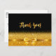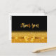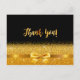Un elegante fondo negro y un falso arco dorado y cinta adhesiva. Delante un guión con letras a mano y el texto: ¡Gracias! Regreso: Plantilla para su nota de agradecimiento y nombre/nombres Perfecto para una fiesta de cumpleaños, aniversario, boda, ducha de novia o ducha de bebé.