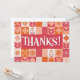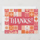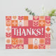 Exprese su gratitud con estilo con esta vibrante tarjeta de felicitación plana! Con letras en negritas blancas en un alegre fondo de mosaico de patrones florales y geométricos rosados, corales y naranjas, este diseño es perfecto para notas de agradecimiento después de eventos como bodas, cumpleaños, duchas para bebés, o simplemente para mostrar aprecio.