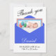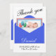 Gracias tarjeta de collage de fotos del anuncio de nacimiento. Elegante diseño minimalista con la foto de tu recién nacido y un simple texto. Personalízalo con la foto, el nombre y las estadísticas de nacimiento de su bebé. En el reverso puedes escribir tu mensaje de agradecimiento y añadir una foto.