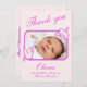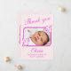 Gracias tarjeta de collage de fotos del anuncio de nacimiento. Elegante diseño minimalista con la foto de su chica recién nacido y un texto simple. Personalízalo con la foto, el nombre, las estadísticas de nacimiento de su bebé o cambie el fondo. En el reverso puedes añadir una foto y tu mensaje de agradecimiento.