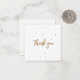 Esta es una pequeña tarjeta plana de "Gracias" de una manera elegante y acogedora: texto purpurina de oro y pequeños purpurinas en un hermoso baile.