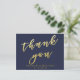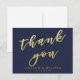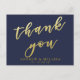 NewParkLane: elegante postal, con 'Gracias' en tipografía de falso oro elegante, sobre un fondo azul marino. Fácil de personalizar en Zazzle con tus propios nombres, fecha u otro texto para un diseño personalizado. Todo el estilo, colores y tamaños del texto se pueden modificar para ajustarse a tus necesidades. También puedes cambiar el color de fondo a cualquier color que prefieras.