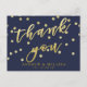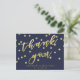 NewParkLane - Tarjeta postal elegante, con 'Gracias' en tipografía de falso oro elegante, sobre un fondo azul marino con confeti dorado. Fácil de personalizar en Zazzle con tus propios nombres, fecha u otro texto para un diseño personalizado. Todo el estilo de texto, colores y tamaños se pueden modificar para adaptarse a tus necesidades. También puedes cambiar el color de fondo a cualquier color que prefieras.