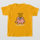 Gracioso ilustracion personalizado de un pequeño cerdo rosado con "Feliz Año Nuevo" (no personalizable) en un fondo transparente. Diseño en camiseta chica amarilla. Ropa, productos de oficina, productos artesanales y más... Diversión para el Año Nuevo chino del cerdo 2019.