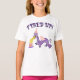 Camiseta de cumpleaños con temática de dragón con fuego que respira el dragón rosa y morado haciendo un deseo.