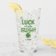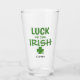 El divertido Irish Luck Green Shamrock Personalized Beer Glass es perfecto para beber tu bebida en un fiesta del Día de San Patricio. Está diseñado con el texto "Suerte de los irlandeses" en negrita con letras verdes brillantes y un trébol de trébol de cuatro hojas en la parte delantera. El nombre o el texto de su personalizado se encuentra en el centro inferior. Haga clic en la opción personalizar plantilla y escriba el nombre.