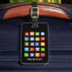 Graciosa etiqueta de equipaje con iconos de la aplicación para smartphones. Etiqueta personalizada para bolsas y maletas. Idea de regalo para técnicos, expertos en informática, nerds de Internet, etc.